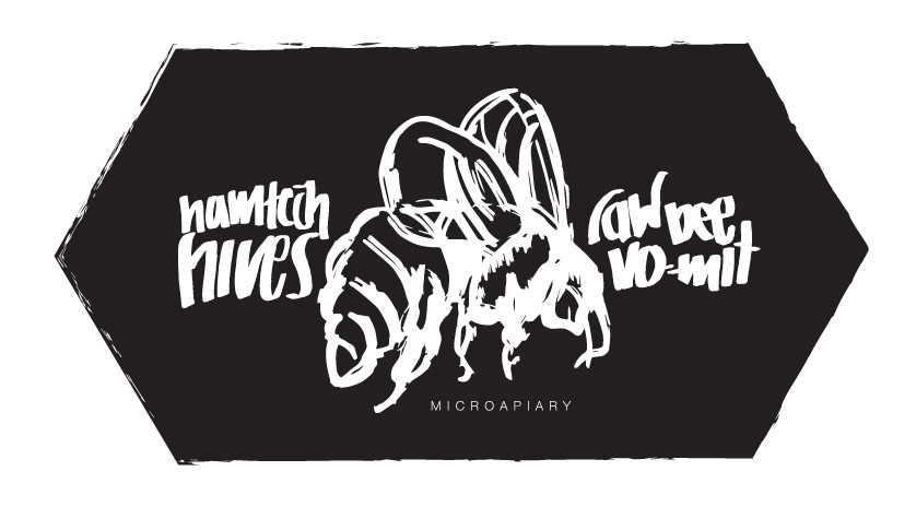 Each label is printed by hand, using a stamp of the hand-drawn and hand-lettered logo design, and glued to the jars of honey. Each jar of honey is a result of pollination/cultivation of the hives at the micro-apiary and filtered in all processes by hand by the beekeepers to reach their final product. The design process for this label is just as transparent and hands-on as their production method.
