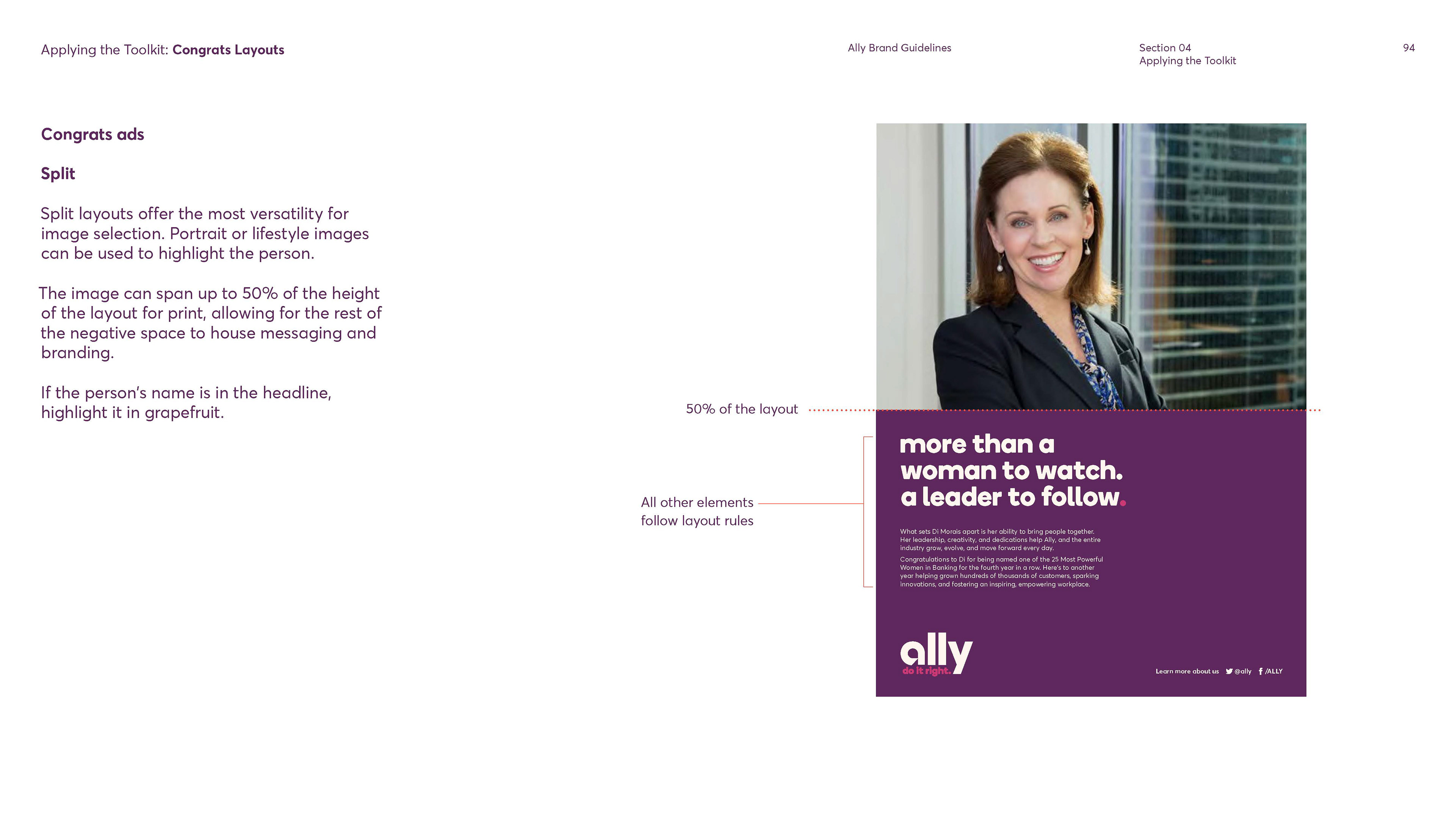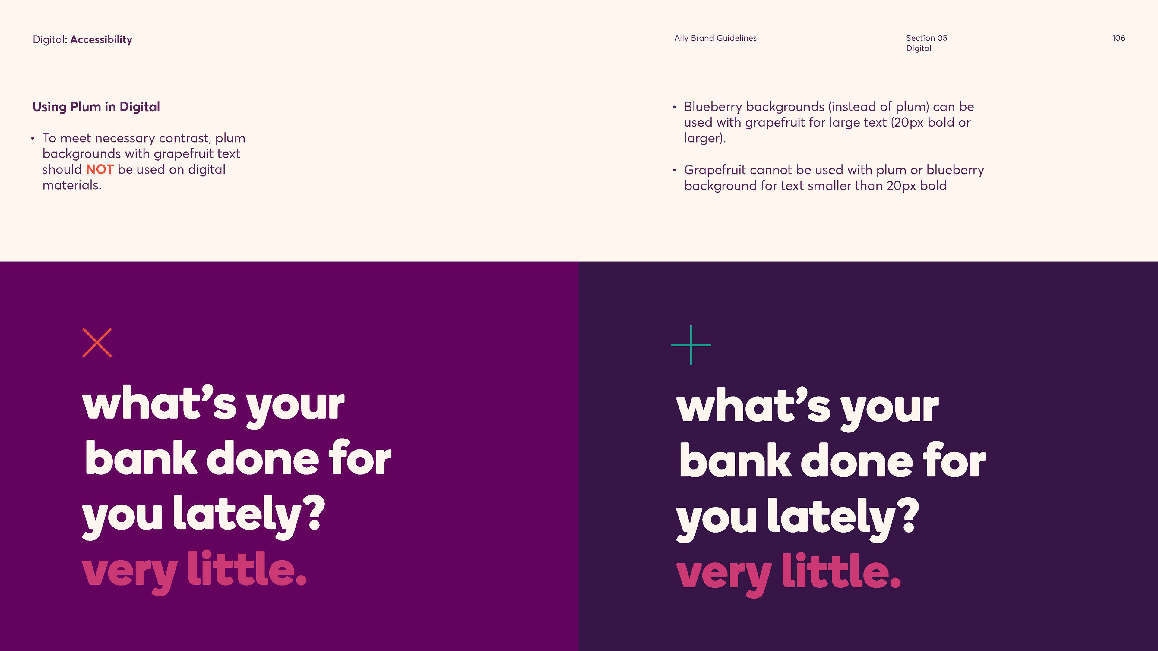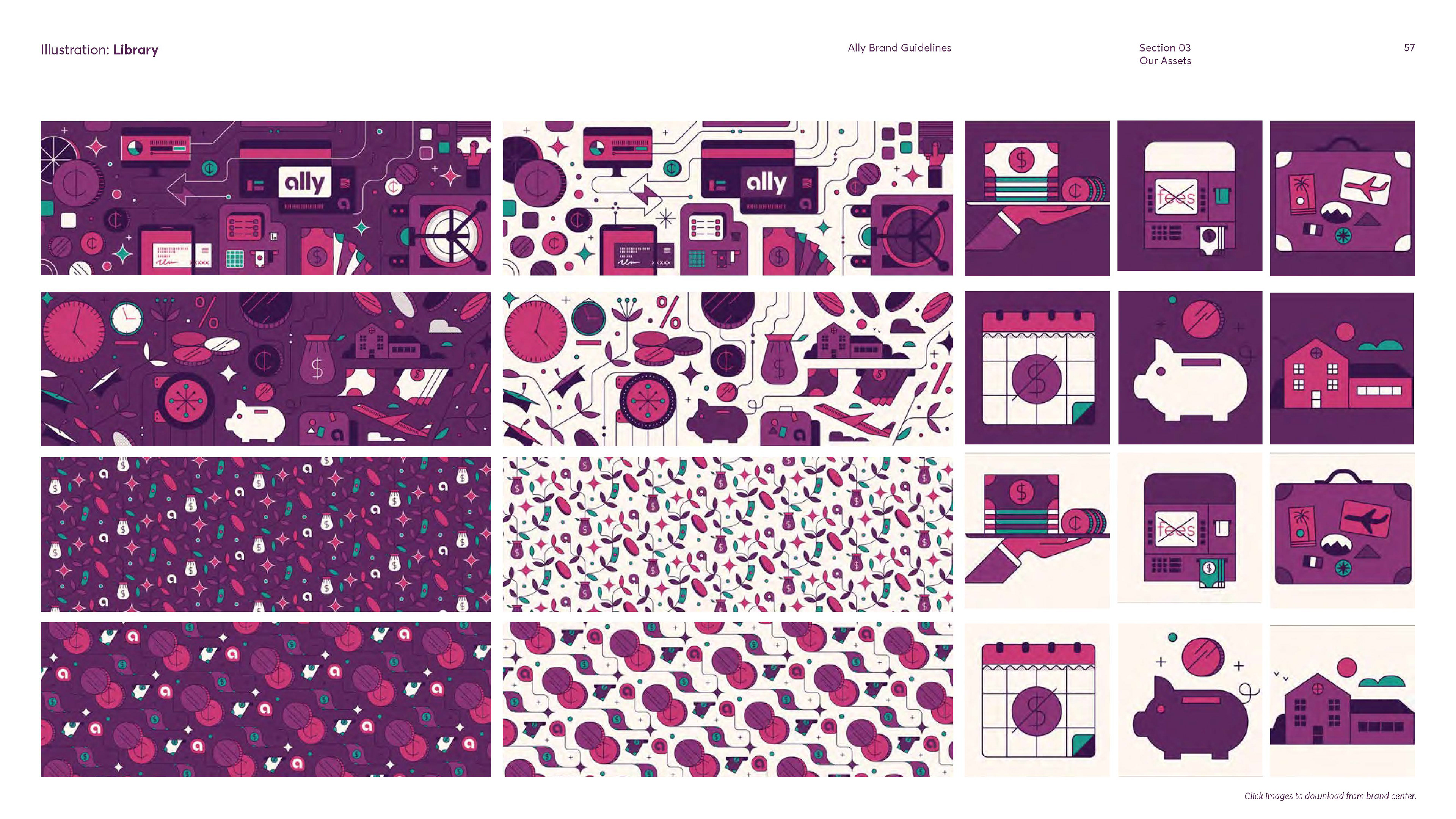 Brand guidelines for in-app product design, digital marketing, and advertising layout specifications for the digital-first banking service. Key integrations for this deck feature a photography asset library that leads you to any image in the client's DAM system with just a click.