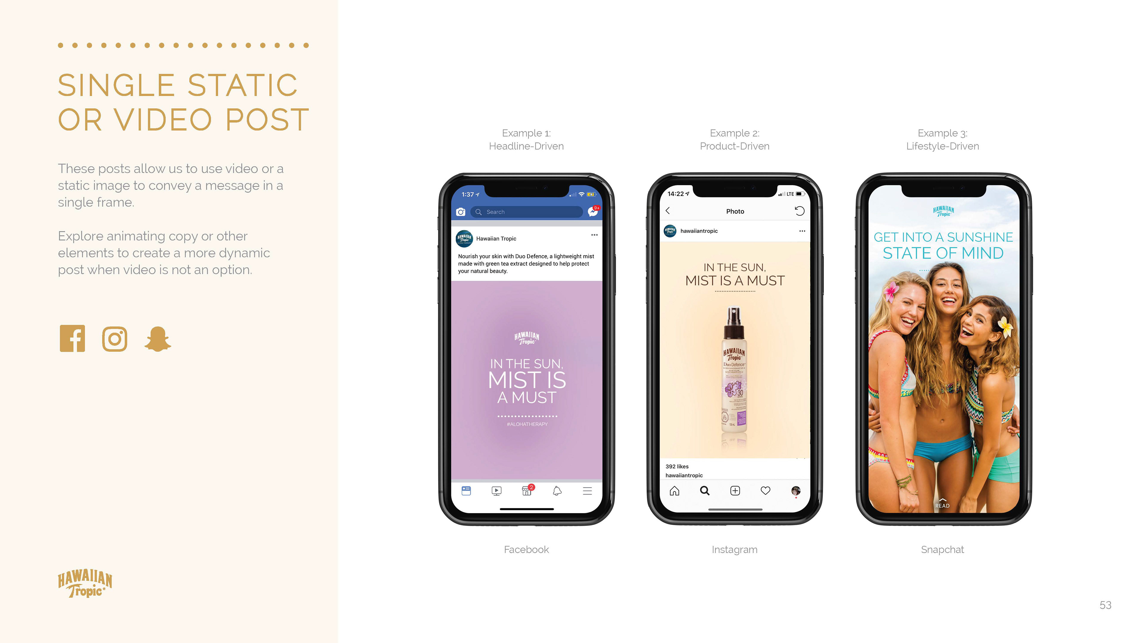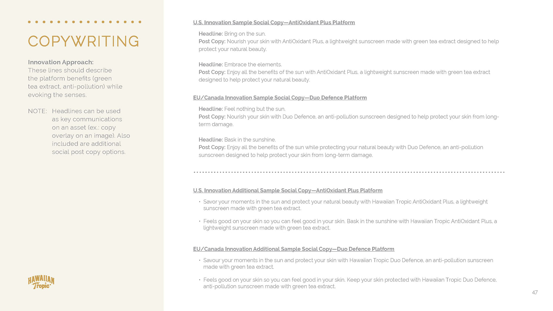 Brand refresh toolkit and new campaign guidelines for a photography and product-centric campaign. Outlines the tone of voice for copywriting and visual world graphic tools for adapting social media channels and marketing.