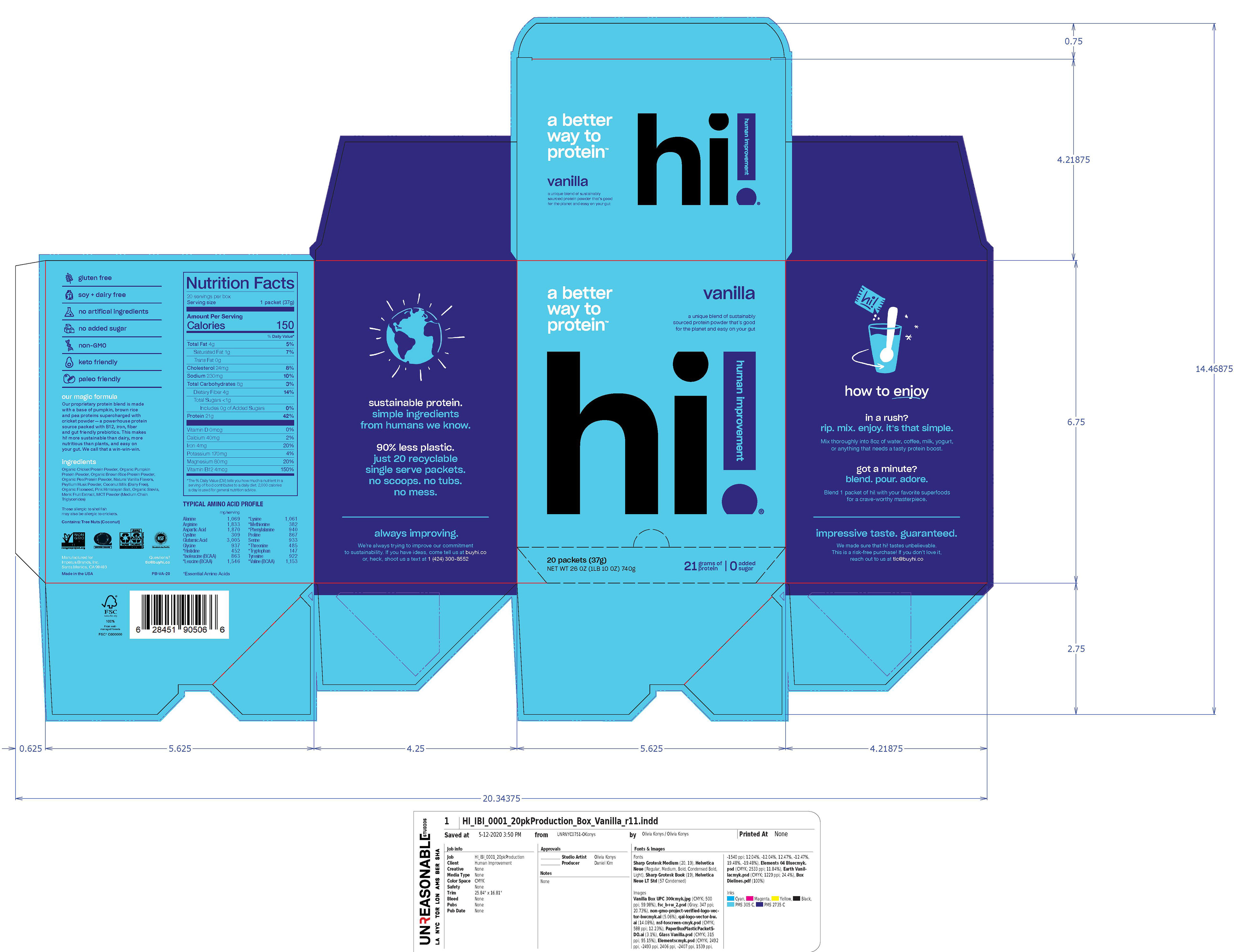 Hi! Protein's two launch flavors, Vanilla and Chocolate, incorporate brand artwork while also highlighting the flexible dietary styles that appeal to their target customer.