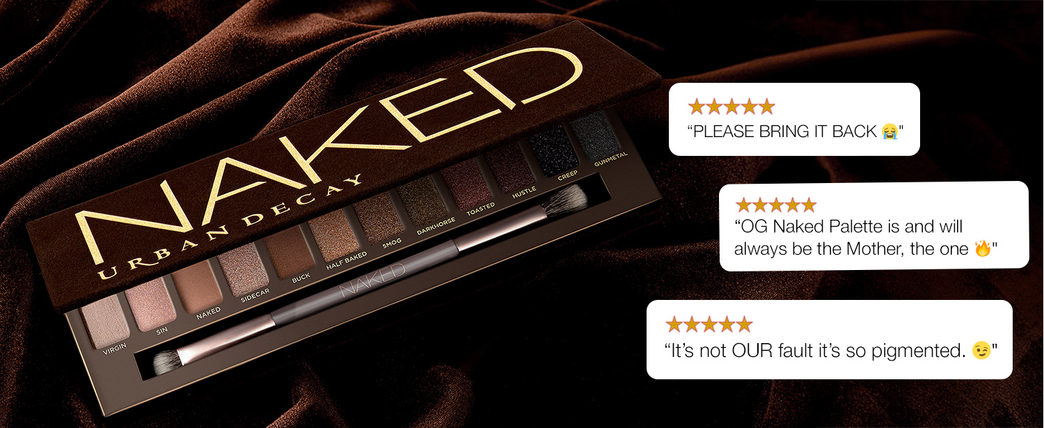 Emphasizes the cult classic product formula, shade range, and technique for an experienced beauty consumer. Focused on selling UD site-wide looks to complete a full face using the rereleased palette alongside new UD beauty products. Highlights multiple eyeshadow looks for different occasions and across a variety of skin tones and face shapes.