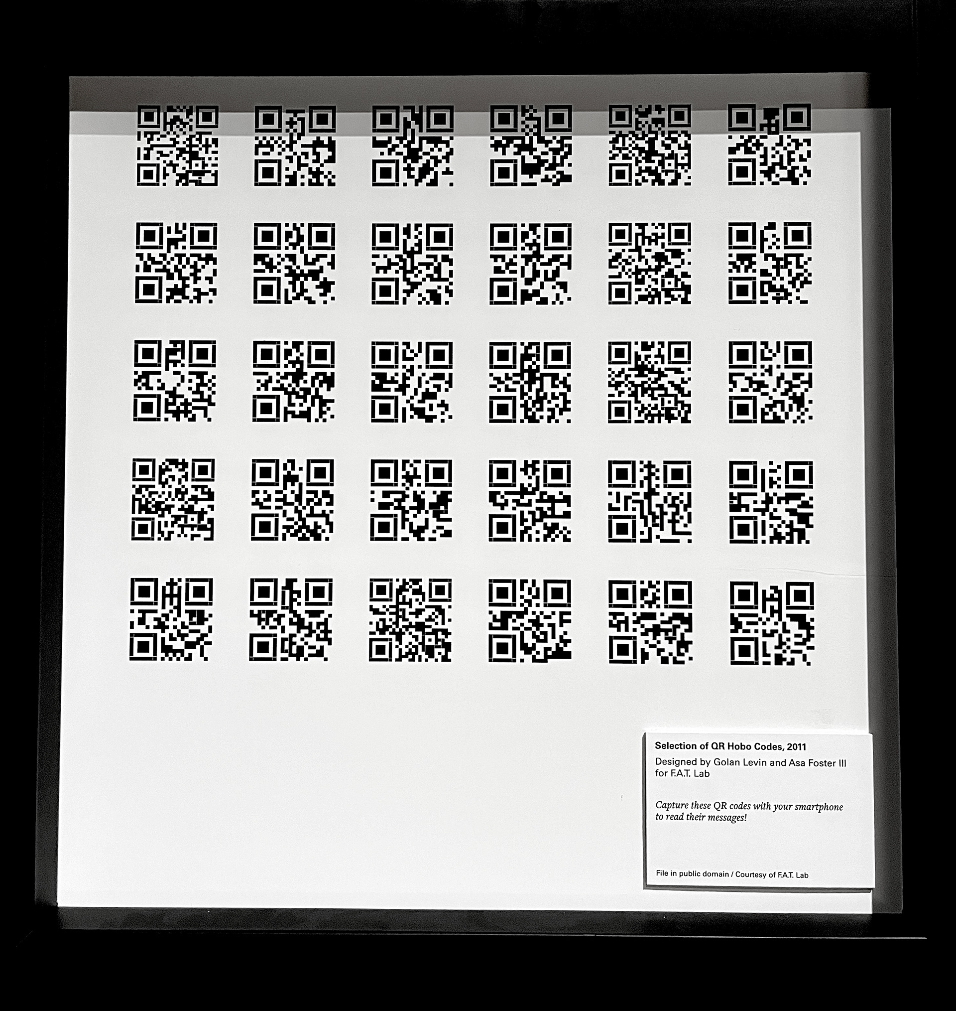 The project title, QR HERE is a play on the phrase, "you are here." These codes were each placed by a creator and designer of their own, who produced and stuck them in public spaces they visited to spread a personal message. By scanning a QR code found in the world, you have walked in the steps of the artist or activist before you.