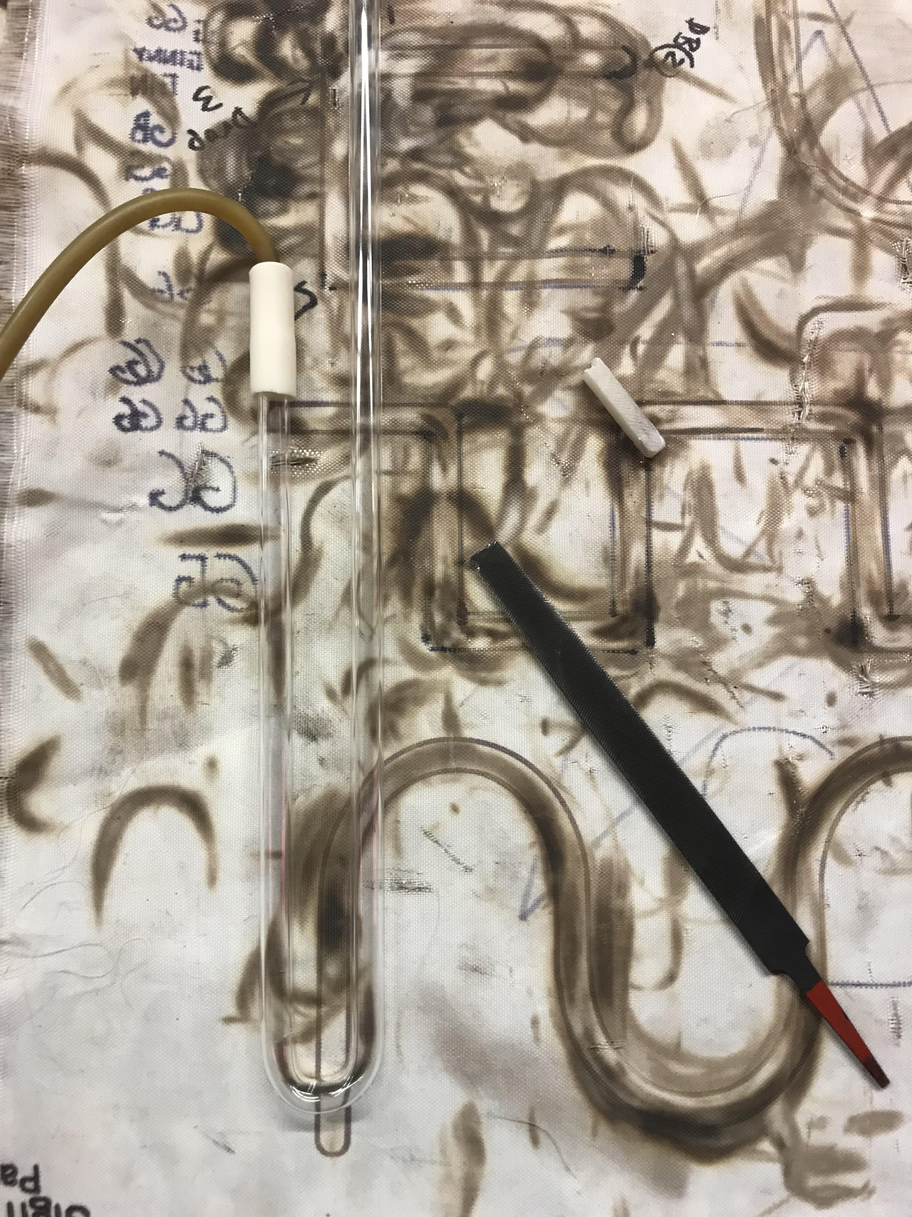 To add the gas and create a power source, I spliced a conductor to each tube of my design by melting the ends of the glass tubes and fusing them together at the right temperature and air pressure. The conductor triggers the neon gas and mercury to become active, having the light shine through as a side effect of the chemical collisions.